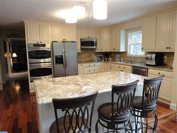 Single Family Home for sale by owner in Southampton, NJ 08088. Impeccably maintained and upgraded Colonial in highly desirable Eagles Mere. Truly turn key house. Everything has been redone or upgraded in the last few years. Gorgeous diagonal corner 1 acre lot. Center hall colonial with 2 story entrance foyer with glazed porcelain floor and curved staircase. Spectacular kitchen/breakfast room combo with skylights. Kitchen has custom cabinetry, center island with granite. High end stainless appliances, including double wall oven and beautiful tile backsplash. French doors from the breakfast room lead out to the multi level paver patio & open yard. Family Room, Formal Dining Room and Formal Living Room. Kitchen, Breakfast Room & DR have beautiful hardwood flooring. Office with custom built in bookshelves. Enormous Master Suite with large bath including Jacuzzi & private water closet. Large well lit walk in closet with custom shelving. Three additional bedrooms and full bath on the second floor. Finished basement