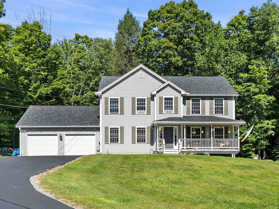 Looking for privacy?? Look no further! This oversized center entrance colonial is set up high, way off the road (small cul-de-sac)! Drive up the long, newly sealed driveway and you will immediately notice the farmers porch, two car attached garage, garden & yard space! Inside you will find a a nicely appointed kitchen with a big pantry, stainless steel appliances, a massive island with seating, and tons of cabinets! The front to back living room with gas fireplace is open to the kitchen & dining area! A separate formal living/dining room or office is perfect for those looking for space to entertain or spread out! The first floor 1/2 bath is complete with laundry and the direct entry to the garage offers a great "mud room" spot! Upstairs, the love primary bedroom offers a high tray ceiling, walk in closet, and a master bath. You will also find 2 additional good size bedrooms and a 4th room, easily used as an additional bedroom or an office! The main bath is large with a double vanity! Looking for even more space?? The lower level is large, dry, and walk out! It is just waiting to be fully finished!!! The home has been well loved by the same owner and offers many upgrades such as: new carpets on second floor, gutters with leaf guards, newly sealed driveway, attic storage over garage with pull down ladder access, tons of closet space, many new light fixtures, resealed driveway, propane heat/hot water, stone walkway... and you're surrounded by conservation land!