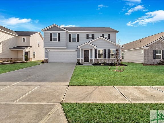 Welcome to this stunning brand new two-story home, nestled in the serene Rice Creek! The main level showcases a formal dining room perfect for lasting memories. There is an open-concept design in the main living space including a kitchen equipped with stainless steel appliances and a convenient island bar for quick meals. A large Owner’s Suite upstairs offers a generous amount of space and has an ensuite with marble dual sinks. There are also three additional spacious bedrooms along with a second full bathroom with plenty of storage. Outside there is a large backyard with a pond and wood view, providing space for outdoor activities. Only 15 minutes to the Savannah/HHI airport and 25 minutes to Riverstreet!