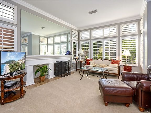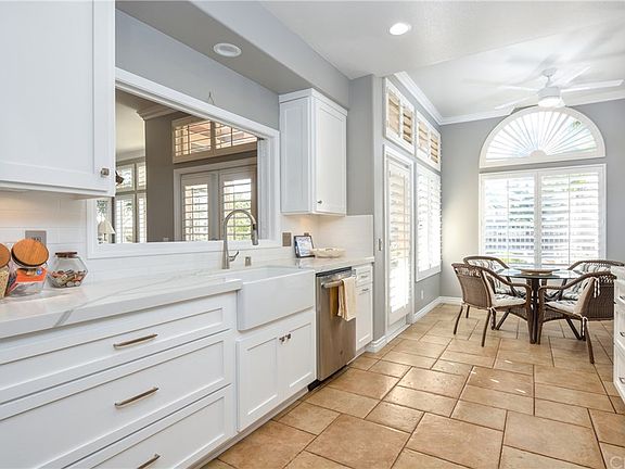 One of the best locations in the community. Lower level, single story with no stairs. This impeccable home has, 2 bedroom, 2 bathrooms and has been upgraded throughout. Starting with the almost new kitchen with white shaker cabinets, quartz countertops and stainless steel appliances. The home also features coloseum tile floors, shutters and upgraded lighting. The home has a cozy fireplace in the living room to further enhance the living space. Enjoy the beautiful large master bedroom with an attached master bath with walk-in closet, upgraded cabinets, natural stone on the counters and in the shower area. Inside laundry with direct assess garage and a full size driveway to park on. The backyard is an entertainer's dream yard with custom brick inlay and professional landscaping and a peek ocean view! Only 1.5 Miles from Dana Point Harbor, Ritz Carlton Beach, 5 Star Hotels, and Golf Resorts. Just a short walk to Ocean Ranch Village which has great shopping, cinimas and restaurants.