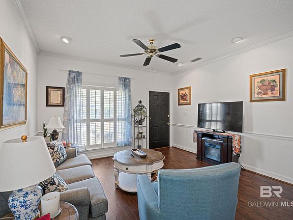 Welcome to 23 Cottage Drive, Fairhope a beautiful 2-bedroom, 2-bathroom home offering 1,139 square feet of stylish, low-maintenance living in a peaceful, owner-only community. Nestled in a well-kept neighborhood with no rentals allowed, this home is designed for comfort and convenience. Step inside to find an open and airy layout highlighted by luxury vinyl plank (LVP) and tile flooring, crown molding, and plantation shutters for a timeless Southern feel. The kitchen features sleek granite countertops, ample cabinetry, and comes complete with a refrigerator, making it truly move-in ready. A mudroom offers practical storage space and convenience, especially on those rainy days. Additional features include hurricane shutters for peace of mind, a fully automated irrigation system for the landscaped garden, and an HOA that takes care of weekly lawn and garden upkeep. This home is perfect for those seeking a blend of charm, security, and easy maintenance in a vibrant community. Don’t miss this rare opportunity – call today to schedule a viewing and see for yourself! Buyer to verify all information during due diligence.