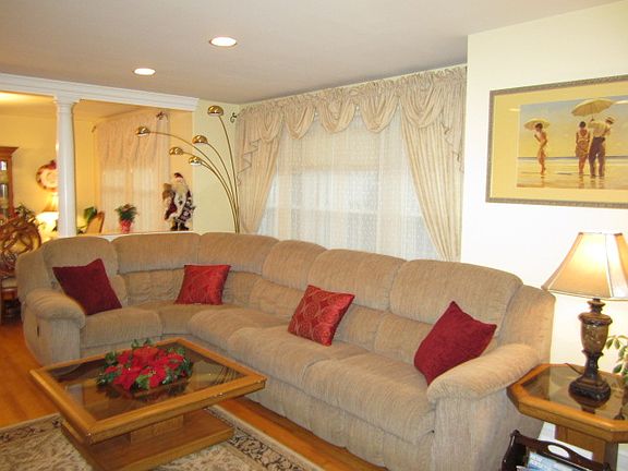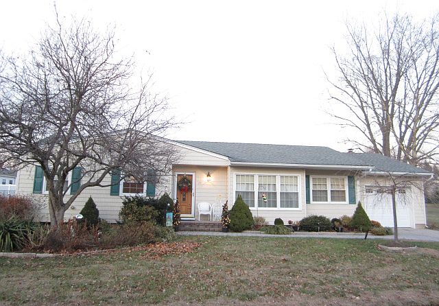Upgraded to the hilt! Remodeled ranch on quiet street features foyer, formal living and dining room combo with decorative columns, hardwood floors and gas fireplace, sun drenched eat in kitchen with stainless steel appliances, tile floor and large pantry, cozy den, 3 generous sized bedrooms, with full updated baths and laundry room plus attached one car garage! Upgrades include vinyl siding, paver driveway, large deck, timberline roof, newer furnace and central air.