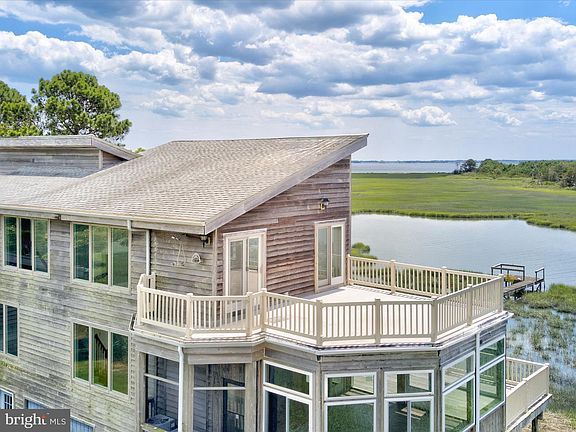 Perfectly positioned in a tranquil cul-de-sac, this contemporary residence is nestled on a very desirable High View lot providing both privacy and unobstructed sweeping wetlands and bay views at every turn! Step inside to the freshly painted bright and airy interior. This contemporary designed home features soaring vaulted ceilings, modern stacked windows, and multiple glass sliding doors allowing natural light to fill the main living space while providing views of the costal natural habitat that surrounds the property. The open-concept design seamlessly connects the kitchen, dining and living area creating a spacious atmosphere perfect for entertaining. The private home office is generously sized, providing enough room for a desk and other comfortable furnishings. Gas fireplaces adorn the living room, home office, and the primary bedroom adding a touch of warmth and elegance. Enjoy an updated eat-in kitchen complete with sleek stainless steel Samsung appliances, a 5-burner gas stove, sleek granite countertops, a tiled backsplash, ample storage space and a kitchen island for additional seating and casual dining. Step outside onto the large open-air deck with a retractable awning, the perfect spot to grill or relax with guests after a day at the beach. Additionally, a 3-season room off the living area offers an ideal space to unwind while being sheltered from the elements. The upper level is dedicated to the serene primary bedroom, featuring an ensuite bathroom with a dual sink vanity, jetted soaking tub, a deep walk-in closet, and a private balcony. Two additional bedrooms and a full bath complete this level, offering ample space for family or guests. The lower level is complete with a 2-car garage and an unfinished basement, offering versatile space for all your storage needs. Low HOA fees. The High View community has a day dock on the Indian River Bay for fishing, crabbing, launching a paddle board or typing up you boat for the day. The Long Neck area has so much to offer – Season boat slips, restaurants & the Paradise Grill with its beach setting and great entertainment programs.