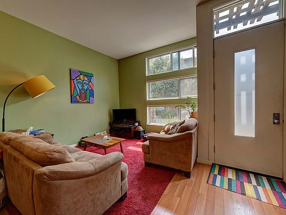 This 2-level detached townhouse has no shared walls and no neighbors above or below. High ceilings, modern architectural elements, and expansive windows give this 1 bedroom plus den, 1 bathroom unit an abundance of natural light. This loft-style home is spacious with an open living, dining, and work space that has beautiful wood floors and looks out onto a lush courtyard. A beautiful galley kitchen offers granite countertops, bamboo cabinetry, and top-of-the-line stainless steel Bosch appliances including a refrigerator, dishwasher, microwave, gas oven/range, and garbage disposal. The straight staircase leads to the spacious second floor with one bedroom, a large walk-in closet, a den, and a good-sized split bathroom with 2 wall-mounted Duravit sinks, a tiled shower/bathtub, and high-grade lighting fixtures. Designed by the award-winning firm David Baker + Partners, the individual townhouses at West End Commons combine the functional and stylish aspects of a loft with more traditional aspects of home design. Large open floor plans are paired with well-appointed kitchens and bathrooms as well as more secluded sleeping areas on the upper floors. Each of the townhouses opens on to 1 of 5 lanes. Lined with pavers, lit by streetlights, and landscaped with trees, vines, and grasses, the lanes create an intimate retreat that was inspired by classic urban neighborhoods such as Brooklyn Heights, London's Islington, and Boston's North End. A path leading through shared green space provides an inviting place to wander or meet up with friends, neighbors, or clients. Located in Oakland's West Clawson neighborhood just 2 blocks south of Emeryville, the development has easy access to all of Emeryville's shops, eateries, grocery stores, and entertainment. UNIT FEATURES: * 1 bedroom plus den, 1 bathroom bi-level detached townhouse * 980 sq. ft. per owner * High ceilings * Kitchen features stainless steel Bosch appliances * Wood floors * Convenient split bathroom with Duravit sinks, tiled shower/bathtub, and high-grade lighting fixtures * Track lighting * Stackable Bosch washer/dryer in unit * Central heat and tankless water heater * Deeded parking space right in front of unit * Pets considered on an individual basis COMPLEX FEATURES: * Controlled-access intercom/telephone entry system * Beautifully landscaped including small green park with picnic table * San Francisco Bay Trail soon to open right in front of complex, connecting you to a variety of hiking, biking, and jogging paths that will stretch for 400 miles throughout the Bay Area * Close to Brown Sugar Kitchen and Kilovolt Coffee * Easy access to Bay Bridge, Downtown Oakland BART, Jack London Square, Rockridge, Berkeley, and all major freeways _Exterior photo, washer/dryer photo, bathroom photo, and floor plans are of similar unit._