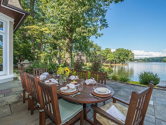This gorgeous home is featured in this month's edition of Industry Magazine (pp. 382-391): https://issuu.com/industrymagazine/docs/new_jersey_sep_oct_industry_2019_/1?e=1073133/72714353 ENJOY LAKESTYLE LIVING YEAR ROUND WITH BREATHTAKING LAKE VIEWS! MUST SEE IN PERSON to truly appreciate this stunning custom built home filled with high end finishes and lake views from nearly every room. Sunny, open floor plan perfect for entertaining or relaxing. No expense spared in this home overflowing with lovely architectural details including custom oversized baseboard and crown molding, 9' ceilings on the 1st floor, Carlyle 100 year old reclaimed barn wood flooring and Travertine tile. Two wood burning fireplaces - one with tumbled Travertine surround in dining room and one in great room with stone and brick surround, custom cherry woodwork and built-ins. Plenty of beautiful Marvin windows throughout the home, central vacuum, alarm/fire system, intercom system, Sonos stereo system (inside and out), water softener, 2 water heaters, 9 zones of heat, 6 zones AC, custom LG Art Cool in family room, and Nest thermostats. Gorgeous custom chef's kitchen with Rutt handcrafted cabinetry, Jerusalem stone and marble countertops, 2 Sub Zero refrigerators plus 2 freezer drawers and 2 refrigerator drawers, "hidden" storage in decorative fluting on sides of refrigerator. Large center island with seating for four, farm sink, Bosch dishwasher, trash/recycling pullout, garbage disposal, storage drawers, built-in microwave cove, and custom built-in shelving. Second island with additional farm sink, built-in Gaggenau steamer, and 2 dishwasher drawers (Fisher and Paykel). A custom tiled arch surrounds the Viking gas cooktop with griddle/electric convection oven, warming drawer, glass accent cabinets, custom wood range hood, built-in spice shelves, tumbled Travertine and decorative tile backsplash. Swing door with decorative glass into sizable walk in pantry with custom built-in shelving. Convenient bar area off of kitchen with 2 refrigerator drawers and ice maker. All baths have been tastefully updated and include a combination of Travertine tile, marble, and slate . This home sits on a large double lot of professionally landscaped property with nearly 180' of lake frontage, irrigation system, hidden fence, spacious front yard, gorgeous slate patio in rear of home with 2 fire pits (one built-in), built-in Viking grill, pizza oven, new outdoor lighting system and gorgeous lake views. Appreciate the exterior's exquisite stone work, graceful roof lines, custom front entrance, multitude of windows and copper gutters. Whole house generator included in sale. TOP SCHOOLS!