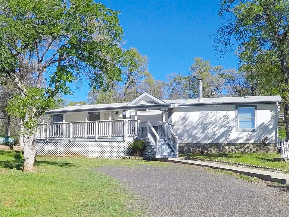 STEAL OF A DEAL!!- Wow where else can you find a home of this size on a lot this big, priced so low? Nowhere but here, that's where. This 3 bedroom 2 bath home is situated on an awesome 5 acre parcel on land. Very open floor plan, includes more than just your run-of-the-mill kitchen, ceiling fans in every room, and all very good sized bedrooms. Sit out under the covered deck in the morning and watch the wild turkeys stop by for their almost daily visit, or just enjoy the setting. Property is fenced (partially with vinyl fencing), has two wells, two shop buildings, and room to spare to park your RV, boat, or any other "toys" you have. This is a must see if you are looking for a lot of privacy for a little price.