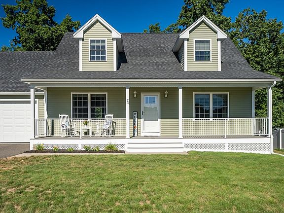 Welcome to this beautiful, well cared for, oversized cape on a quiet cul de sac in a desirable neighborhood in Ludlow! Constructed in 2016 with a 5-Star Energy Efficiency Rating, this home features an open floor plan, beautiful kitchen with stainless steel appliances, and a first floor main bedroom with attached full bathroom. A full length front porch greets you as you take in the charming curb appeal. Since 2016, the owners have finished a large portion of the basement into usable space for a playroom, office or home gym! First floor laundry is a plus and the trex deck off the kitchen and dining space offers indoor/outdoor dining options. The second floor has two massive bedrooms with all the space you'll need. A large bathroom with double vanity and tub/shower complete the upstairs. This one wont last! Join us for the Open house Saturday 4/22 from 11-1pm!