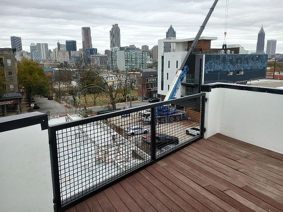 Beltline adjacent new modern house with rooftop deck, skyline view and off-street parking in Forth Ward available for a 1-year lease or longer. Short walk to the east side Beltline, King Memorial MARTA, Chrome Yellow Coffee, Fetch dog park, Church, Slutty Vegan and too many more restaurants and entertainment spots to name. 3-story modern design with open stairs, high ceilings, LED lighting, three-zone heat pump, big windows on three sides and lots of light. Private live/work space with bedroom/office, full bathroom, closet, connections for stacked washer/dryer, entry foyer and concrete floors on the entry level. On the second level are a primary bedroom, ensuite tile bath with two sinks, walk-in closet (with three rods and built in shelves) and light hardwood floors on the second level. On the third level are an open living and dining area, kitchen with black cabinets, quartz countertops, new appliances (including a dishwasher and microwave oven), a half bathroom, light hardwood floors, great views and steps leading to a large rooftop deck with spectacular skyline and treetop views. Renter is responsible for electricity and water. Lease term is 12 months or longer