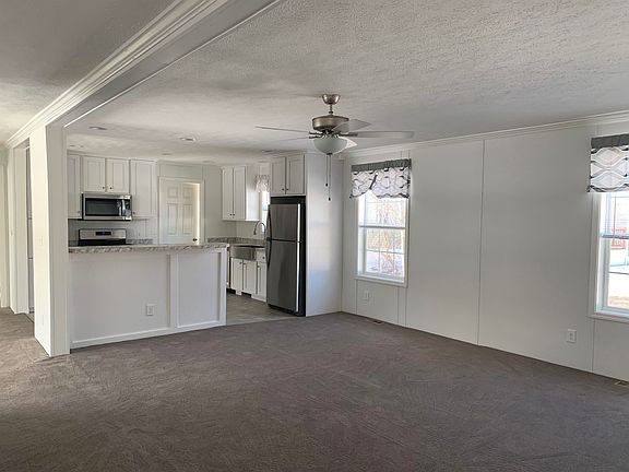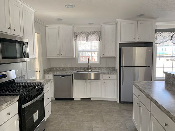 SHOWCASE HOME**BRAND NEW**COOP COMMUNITY** PET FRIENDLY** This home is simply beautiful inside and out on a nice corner lot that sits high with new paved driveway and lot slopes to the corner! The interior is very open with a Great Room that allows you to have an island for stools and a large dining area and a huge living room. The kitchen is nicely positioned in this space with stainless appliances, white kitchen cabinets and it opens to a large laundry room with another sink next to the washer and dryer!! There is a nice covered front porch with lights and pretty banister to greet you when you enter the home and has such nice curb appeal!! There are 3 bedrooms and 2 baths. The master has a walk in closet and private bathroom with oversized shower with seats!! This Coop is owned by the residents that live here as well. This is a really nice neighborhood close to town and just off the beaten path for privacy!!! Very well insulated and loads of windows. 2x6 Construction!! Come take a look!!