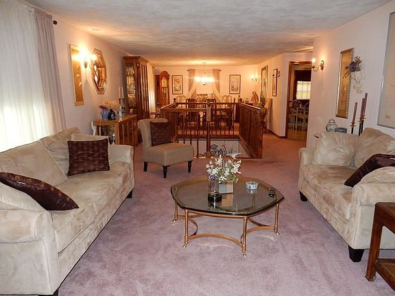 Custom Built Large Bright Sunny Lovely Raised Ranch Open Concept 44 ' living room and dining room with open balcony down to foyer security system 3 bedrooms 2 full Baths, one with laundry room, fireplace livingroom special lighting fully appliance eat in kitchen. 2 year old heating system and hot water tank, roof is 6 years old. large 18' x 14'master bedroom . Plenty of Closet space front to back family room large private yard with two driveways parking for 6 cars conveniently located to Woburn Square. and major highways