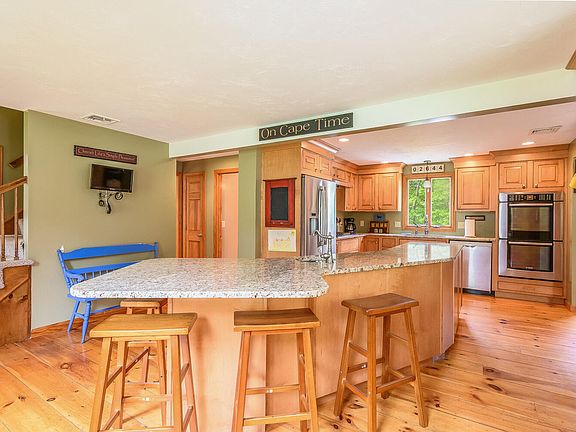 Cape style home with plenty of room for all to gather. This home offers 3 bedrooms and additional finished space over the garage perfect for home office, media room, in law suite, etc.. With a kitchenette, full bath and balcony it offers tremendous potential. Gorgeous chefs kitchen with custom cabinetry, large island with granite and stainless appliances. Wide pine floors throughout. Living room with wood stove, large dining area. Three bedrooms on second level including private master suite with full bath. There is a finished basement, attached 2 car garage and large, private yard with space for a pool. With its close proximity to Snake Pond and sandy beach, this home be the perfect space to entertain all of your family and friends. Please verify all information contained herein.