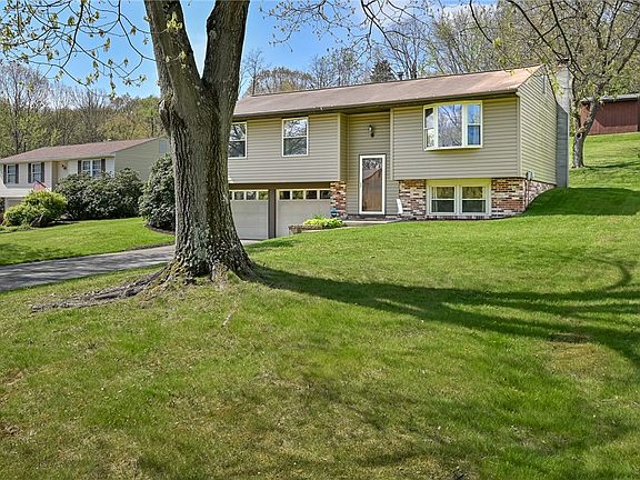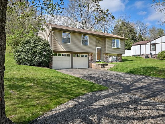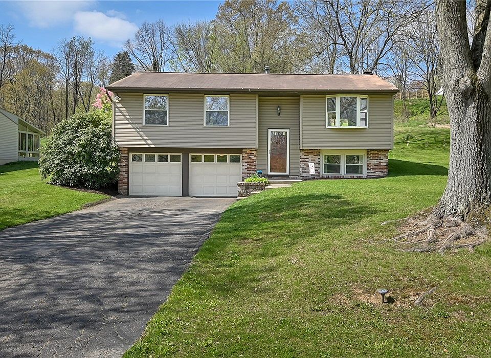 This Super Sweet Split Entry Home is waiting for you! It sits on a flat driveway that can accommodate 9 cars in addition to the 2 car garage, at the end of a cul-de-sac and minutes from Deer Lakes Park and Schools. In addition to the large Living Room, there's a finished lower level Family Room, where you can throw some logs in the wood burner & get cozy on cold winter nights! Plenty of improvements have been made along the way, including the Updated Full Bath, New Powder Room, New Refrigerator, New Hot Water Tank, & New Washer & Dryer. The wood Cabinets in the Kitchen have been converted to soft close & the Ceramic Backsplash boasts a pretty Basket Weave Tile. The combined Kitchen/Dining Area measures approximately 20x10. Both garage doors have auto openers. Nice touches include: Cathedral Ceiling, Beams, Wainscoting, Stone & Cedar surround at Wood Burner, a huge 37x12 Rear Deck (20' covered/17' uncovered), 2 sets of Patio Doors (from Primary BR & DR), and a Faux Brick Accent Wall.