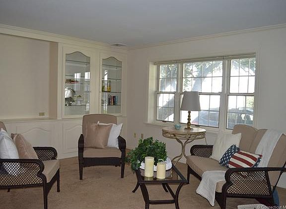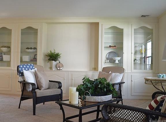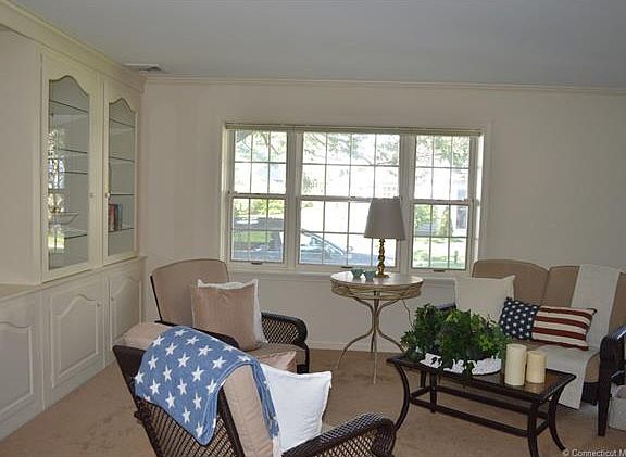 Fine opportunity to own in this lovely community. Well-maintained, light-filled ranch unit in peaceful location with private-feeling back yard. Generous living room/Dining Room, cozy den with Fireplace, many built-ins. Two large bedrooms, one with en suite bathroom. Security system. Great Three Season room opening on to lots of greenspace (room for a garden!).Central air and gas heat, gas fireplace. Vacant and ready for immediate occupancy. Crystal chandelier does not convey.