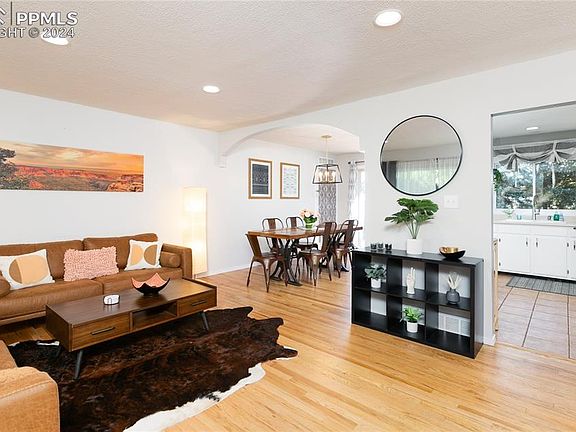 Welcome to your retreat! This inviting ranch-style home offers 4 bedrooms and 2 bathrooms, with Oak hardwood floors, Nest thermostat, an open living area leading to a stamped-concrete patio, and a fenced-in backyard with a shed that is sold "as-is" with available plumbing! Discover the convenience of a Navian Tankless Water Heater and the security of a new roof with Class 4 Hail Resistant Shingles installed in 2018. Additionally, this home presents a unique opportunity to utilize the master suite as a rental, in-law suite, or potential Airbnb. Enjoy easy access to downtown, Memorial Hospital, the Olympic Center, and Memorial Park, Palmer Park, the Airport, and the Garden of the Gods. With proximity to all military bases, this residence creates seamless comfort and accessibility.