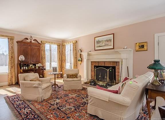 Exceptional passive solar 2,961 square feet Colonial residence set majestically on 16 plus acres. Stunning blend of sophistication, country ambience and classic elegance. 5 bedrooms, 3 1/2 baths, built in 1981 with energy efficiency in mind, highest attention to detail throughout including moldings, hardwood/tile flooring and custom built-ins. Enjoy gracious entertaining in the living room with 9' ceilings, antique fireplace mantle, window seat, bookcases and French doors to private garden. Formal dining room with soaring ceiling and brick fireplace with Vermont cast stove. Chef's eat-in kitchen with large butcher block island, custom French decorative tile, open to family room with fireplace. Luxurious master suite with office/sitting room and walk in closet. Two double bedrooms with bath complete the second floor. Mud room and large 2 car garage with storage. Additional 800 sq. feet finished on lower level. boasting two bedrooms, family room w/fireplace, full bath, laundry, workroom and utility room. Geothermal heating and cooling. Minimal utility costs. Ideal horse property. Enjoy panoramic views of rolling meadows in this light filled home. A HOME THAT TAKES YOU AWAY FROM IT ALL!!