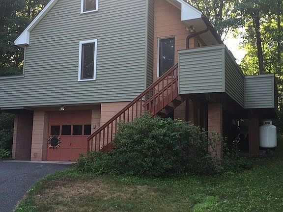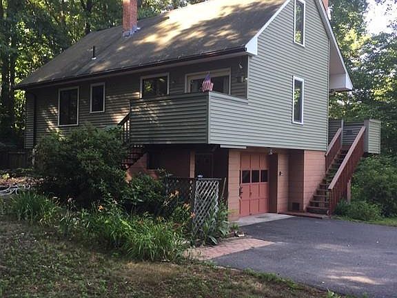 Contemporary home privately set on over 1.5 acres including wooded area with seasonal brook and landscaped yard for recreation and gardening. Well constructed of concrete block and wood frame this wonderful home presents a three level floor plan featuring first floor living room with fireplace, open kitchen with dining, two bedrooms, hardwood floors and plentiful sunlight. Second floor provides great master bedroom with adjacent space for leisure or home office. Finally the lower level of this house which walks out to the rear yard has two finished rooms for recreation or studies. Located off of a common drive and set back nicely, you will enjoy the privacy and ambiance while being very conveniently located.