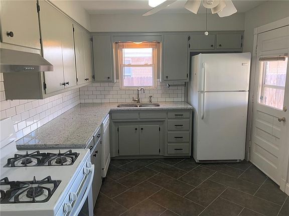 Adorable home that is currently occupied by renters but would also make a wonderful home for anyone. New granite counters, subway tile backsplash and tile floors in kitchen in 2019. Bathroom update in 2019. Original hardwood flooring throughout. Kitchen equipped with fridge, gas range, and lots of storage. New epoxy on garage floor. Garage door opener. Sprinkler system. Insulated windows. Washer and dryer remain. Large backyard has storage building and is fully fenced. Convenient location. Great curb appeal.
