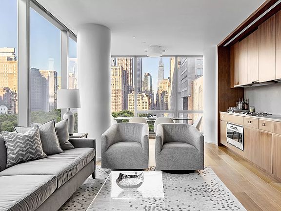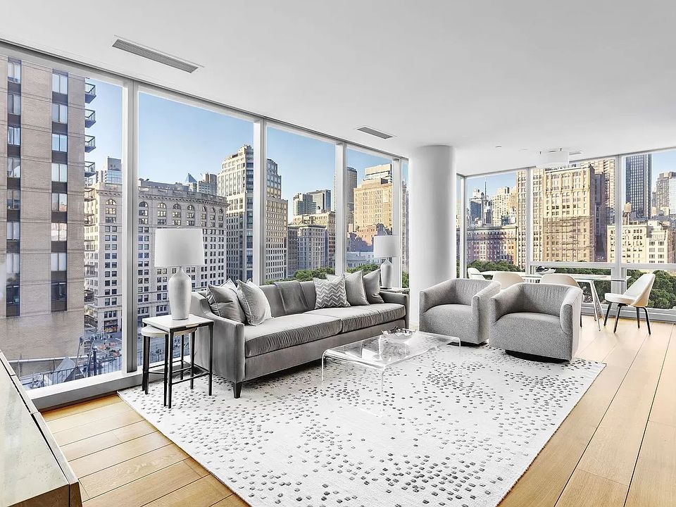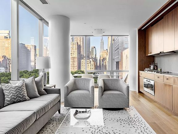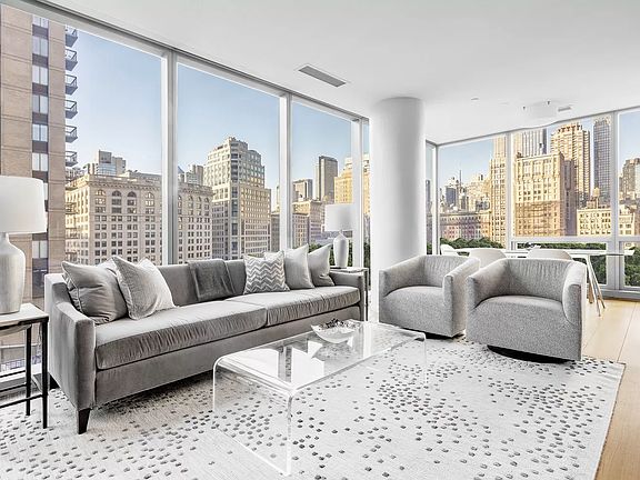 This two bed, two bath, 1,328 square foot apartment offers stunning views of Madison Square Park, The Empire State Building and Met Life Clocktower. The home is located in the Cetra-Ruddy designed One Madison, a 60-story luxury condominium situated at the nexus of the city's most charismatic and vibrant neighborhood's - Flatiron. The open plan kitchen offers stone countertops, custom cabinetry made of rosewood by Louro Preto, Vola fixtures, and a complete suite of Gaggenau appliances. The large master bedroom has northern and western exposures. The luxurious master bath boasts a double vanity, large shower stall, all with Vola fixtures, and a wall mounted Duravit toilet. The floor and walls are clad with honed finished Italian travertine. The secondary bedroom has double exposures and the adjacent bathroom has floor to ceiling marble and a wall-mounted toilet. The home is equipped with a Bosch washer/dryer. Perched above the iconic Madison Square Park in New York's historic Flatiron District, One Madison offers residents the finest in NYC living. LIVunLtd has created the One Club, a 10,000 square foot wellness-focused amenity space designed by Yabu Pushelberg that sets the bar for amenitized living. Highlights include a fully-equipped fitness center with yoga room, heated swimming pool and glass-enclosed steam room overlooking Madison Square Park. Additional features include a butler-served parlor lounge with gas fireplace, catering kitchen, private screening room, children's playroom, and full-time doorman and concierge. One Madison is a rare Manhattan building that truly has it all - views, amenities, exquisite finishes and a location moments from the best New York City has to offer - fine dining at five-star restaurants, Eataly, Whole Foods, Gramercy Park, and gorgeous landmarked tree-lined blocks.