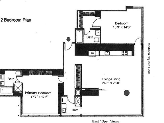 Enjoy unobstructed views of Madison Square Park and the iconic Manhattan skyline from a glamorous rental, one of only 53 luxurious tower residences at One Madison at 23 East 22nd Street. The expansive corner Living/Great Room boasts protected views of Madison Square Park, the Empire State Building and the Met Life Clock Tower from floor-to-ceiling windows. A light-flooded corner Primary Bedroom features open southern views and includes a spa-like Primary Bathroom. A Second Bedroom also enjoys direct park and city views and features an en-suite Bathroom. A third full Bathroom is adjacent to an east-facing Study, easily convertible to a Third Bedroom. The superb Chef's Kitchen is finished with rosewood cabinetry and is outfitted with Sub-Zero and Miele kitchen and laundry appliances. Sophisticated, centrally-controlled climate, newly updated automatic window-shade, alarm and media systems complete this superb residence. One Madison is a full-service boutique condominium, staffed by a Resident Manager with full-time doorman and concierge service. Two amenity floors include the One Club with a 50' lap pool, a superb fitness center and spa overlooking Madison Square Park. Screening, meeting, and children's playrooms, a private library, dining room, and catering kitchen may be reserved by residents for private events. One Madison represents the quintessence of fine design and an unparalleled level of personal service in one of the city's most vibrant neighborhoods. Prospective renters, their brokers and/or agents understand that neither the Landlord nor the Landlord's Agent will charge or collect fees to a prospective renter in connection with this property. Fees payable by the Tenant include the following: Application Processing Fee of $550. The first month's rent and one month's security deposit are due upon signing the lease agreement and are payable by the Tenant, as well as renters' insurance, cable, internet, electricity, lockouts, laundry machines, and/or late fees as permitted by law. Nor will the Landlord or the landlord's Agent assume responsibility for any brokerage fees incurred by a prospective renter in connection with this property. Any broker who contacts the listing broker in connection with this listing, who is not the exclusive broker, is not the landlord's broker and will not be paid by the landlord. This listing is being advertised to prospective renters. Minimum lease term of one year.