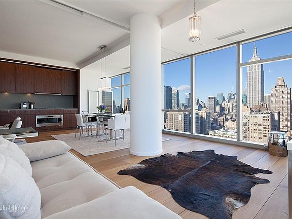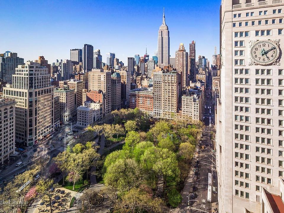 Enjoy new heights of living luxury at the sleek, sought-after One Madison condominium towering 60 stories tall at 23 East 22 Street, at the crossroads of Flatiron, Gramercy, and NoMad! Apartment 33B in this magnificent, amenity-rich building is in triple-mint condition, with 2 bedrooms, 2 baths, and dramatic high-floor views to the north and east showcasing the Empire State Building, Clock Tower and Madison Square Park. Awing floor-to-ceiling windows throughout present beautiful city vistas and invite flooding natural light into the expansive 1,560-square-foot home. Entertain in style in the generously-sized corner living/dining room with a backdrop of awing views presented through massive 10-foot windows. High ceilings optimize airiness, and upscale finishes abound such as 9' wide-rift and quarter sawn white oak floors, blackout and solar electric shades, a built-in wine fridge, Nest thermostats, central HVAC, and an upgraded AV system for state-of-the-art comfort. The open kitchen with quartz countertops, rosewood cabinetry and premium Gaggenau appliances will inspire the chef and assures easy serving. The south-facing master suite has lovely views and a beautiful en-suite bath with a relaxing soaking tub and Italian travertine shower. The 2nd bedroom is nicely sized, and the 2nd full bath is elegantly adorned with Calcutta Gold finishes. Completed in 2014, One Madison Park Condominium offers residents an attentive staff with full-time doorman and concierge service, as well as 10,000 square feet of lavish amenities at the One Club designed by Yabu Pushelberg, featuring a fully-equipped fitness center with yoga room, swimming pool and glass-enclosed steam room ? all facing Madison Square Park. There is also a parlor lounge with an elongated fireplace, children's playroom and intimate screening room. The location is convenient to subways, Whole Foods, Trader Joe's, Eataly and other excellent restaurants, and the Flatiron shopping district.