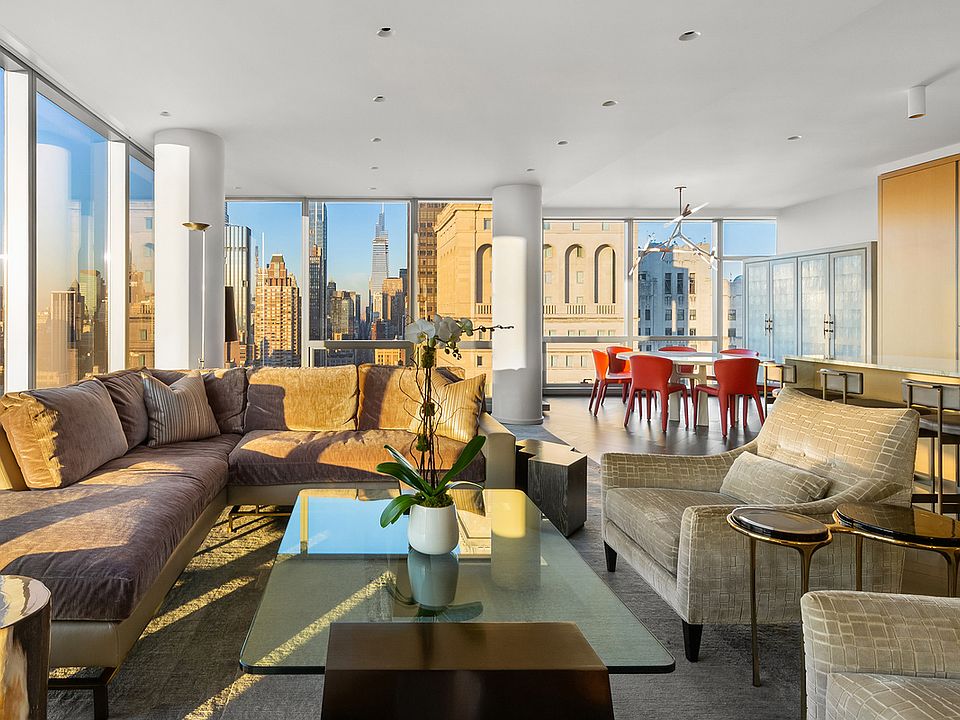 With unparalleled, 360o city views, this spectacular 3,310 sq.ft +/- four bedroom, four bathroom home occupies the entire 41st floor of the iconic One Madison condominium. Unencumbered sunrise and sunset views of the Empire State Building, Madison Square Park, the Hudson River and beyond await you, thanks to massive, floor-to-ceiling windows with ceilings up to 11 feet. An exquisitely designed interior by Yabu-Pushelberg and unmatched attention to detail make this a rare, not-to-be-missed opportunity. Access the residence by a security-keyed elevator into the private foyer. Entertain in style in the sprawling, light-filled great room with north and west exposures, featuring contemporary touches like architectural columns and bespoke 9-inch quarter sawn oak flooring. The open chef's kitchen features a Borghini Calacatta marble island with seating, a pull-out pantry, custom cabinetry, and top-of-the-line Miele appliances. The lavish master suite sits in the northeast corner and offers beautiful picturesque views. It includes an extraordinary walk-in closet and a spa-like marble bath boasting a free-standing soaking tub, separate glass-enclosed shower and a private water closet, all overlooking the Met Life Clock-Tower. The three additional bedrooms are well-apportioned, boast walls of windows and two of the three feature en-suite marble bathrooms, generous, custom-designed closet space, while the southwest bedroom's closet was converted into a custom built-in desk for an office. Additionally, every bathroom features radiant heated floors. There is a Bosch washer;dryer. This exceptional home features state of the art technology including motorized solar shades, invisible audio throughout the home and a customizable Control4 Smart Home System. Storage unit available for purchase. The Cetra-Ruddy designed One Madison, a 60-story luxury condominium situated at the nexus of the city's most charismatic and vibrant neighborhoods: Flatiron, Gramercy and NoMad. One Madison offers unparalleled services and extensive amenities that include a full-time doorman and concierge, great room with dining room and lounge, parlor room, screening room, a staffed catering kitchen, state-of-the-art fitness center, yoga room, 50 foot heated indoor swimming pool, and a spa with a glass enclosed steam room overlooking Madison Square Park.