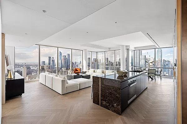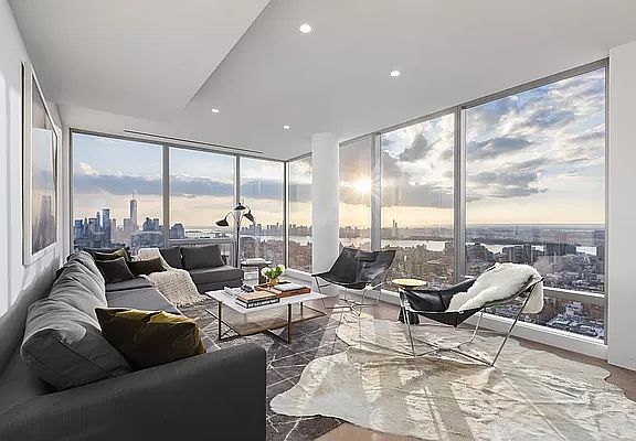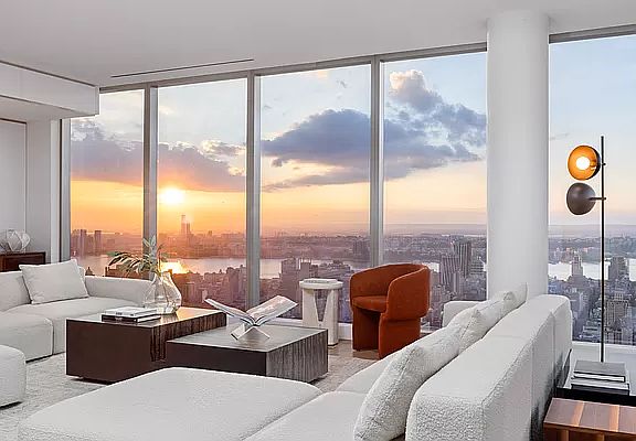 A once in a lifetime opportunity to own this stunning full-floor duplex on the 55th & 56th Floors at the coveted One Madison! Spanning over 6,600 square feet with unparalleled 360-degree Park, River, and New York City views, this opportunity will not last. On each floor, the elevator opens to a private foyer with a South-facing view that spans as far as the eye can see. It then moves into the grand living/entertaining space which features Western and Northern exposures, with views of the river, the park, and all of New York City. Ample space is strategically laid out to naturally section off the living, dining, and kitchen areas to allow for the perfect home to entertain guests. This residence boasts eight spacious bedrooms (four per floor), six full bathrooms (three per floor), and an additional two powder rooms (one per floor). The North and East facing primary suite comes equipped with a stunning en-suite bathroom and magnificent walk-in closet. One Madison is a full service condominium located in the heart of the Flatiron District, just steps from Madison Square Park. Amenities here include: full-time doorman and concierge, state-of-the-art fitness center, indoor pool, steam room, lounge, parlor room, screening room and private dining room. Please note: The 56 floor has just undergone an incredible gut renovation. The 55th floor is currently raw and the pictures are renderings displaying the approved plans. The 55th floor can be delivered either raw, as-is, or completed to the specifications of the approved plans, shown in the pictures. The current asking price reflects the apartment being delivered in raw, as-is, condition.