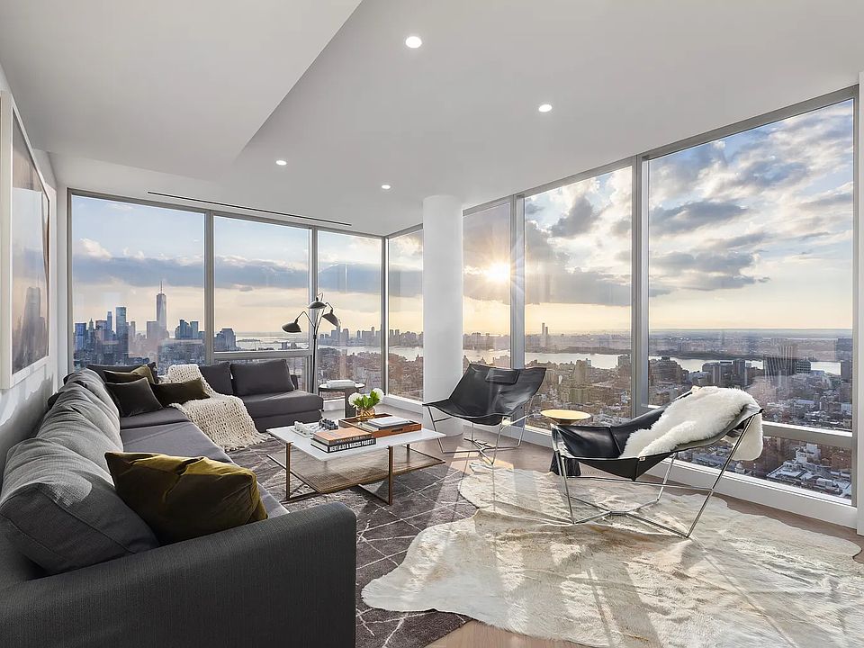 The 55th Floor at the coveted One Madison is now available! Spanning over 3,300 square feet with unparalleled 360-degree Park, River, and New York City views, this incredible home won't be on the market for long. The unit can be delivered raw for any architect to design, or complete with the pre-approved plans seen above. The elevator opens to a private foyer with a South-facing view that spans as far as the eye can see. It then moves into the grand living/entertaining space which features Western and Northern exposures, with views of the river, the park, and all of New York City. Ample space is strategically laid out to naturally section off the living, dining, and kitchen areas to allow for the perfect home to entertain guests. This residence boasts four spacious bedrooms, three full bathrooms, and an additional powder room. The North and East facing primary suite comes equipped with a stunning en-suite bathroom and magnificent walk-in closet. One Madison is a full service condominium located in the heart of the Flatiron District, just steps from Madison Square Park. Amenities here include: full-time doorman and concierge, state-of-the-art fitness center, indoor pool, steam room, lounge, parlor room, screening room and private dining room. Please note: the pictures are renderings displaying the approved renovation plans. The unit can be delivered either raw, as-is, or completed to the specifications of the approved plans, shown above. The current asking price reflects the apartment being delivered completed. At buyer request the unit an be delivered as a white box with an asking of $15M