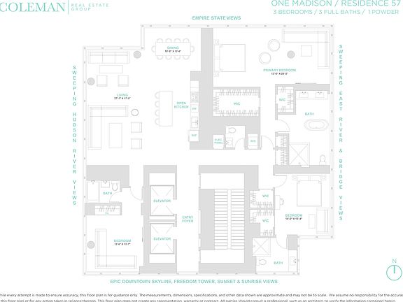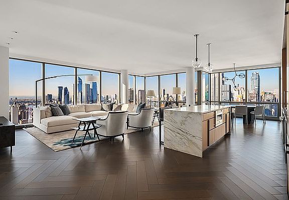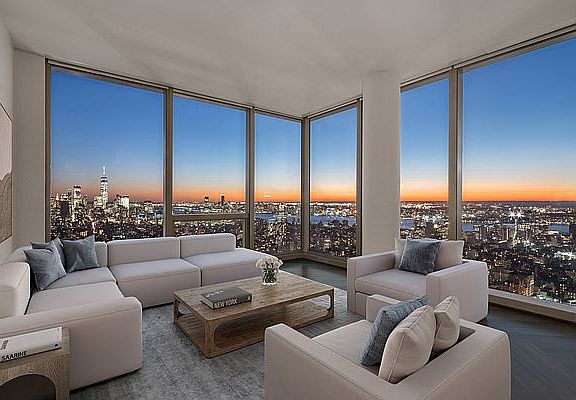 Offered Furnished and Unfurnished. From the very Top Tier of One Madison comes Residence 57. This Yabu Pushelberg designed full floor residence sits in the very epicenter of the New York skyline like no other. A vantage point in terms of location and elevation that cannot be matched. Its no wonder these breathtaking 360 degree views have been celebrated as "the best views in Manhattan of Manhattan." Step off your keyed elevator into your private Entrance Foyer with framed unprecedented unencumbered views south. Move into the open Great Room looking north over Madison Square Park with iconic views of the Empire State Building, west to the Hudson River, and well beyond. Watch the sunset each evening from the southwest corner Living Room with the soft light reflecting off the Freedom Tower and all of the Manhattans bridges. The spralling Primary Bedroom Suite captures arguably the most magical and romantic night views north of the twinkling Empire State Building and east for soft morning sunrises over the East River. The Primary Bedroom includes room for an ensuite Living Room, a tremendous spa-like marble Primary Bath with soaking tub, rain shower, double vanity and two oversized walk-in closets. A private Guest Suite has the most exceptional and dramatic views south of both East and Hudson Rivers, the financial district, and well beyond. OneMadison is a full service boutique condominium. Outside the entrance on quaint 22nd Street you are greeted by 24 hour doorman. Inside the grand lobby a concierge takes your requests. And the live-in resident manager and the many other hands of building staff stand by ready to meet any need. Two amenity floors have floor-to-ceiling windows overlooking the Madison Square Park green. The Spa Level offers a gym, pool, steam room, and changing rooms. And the Club Level offers a screening room, large dining room with catering kitchen, common living room, and separate library with daily attendant service which can be used daily or reserved and staffed for residents for private catered events. Custom closets and electric privacy and blackout shades have been installed throughout this home. Offered for $47,500/mo Furnished and $45,000 Unfurnished.