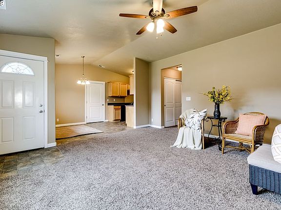 2007 built home with new carpet and fresh paint, move in ready! Open concept living, dining and kitchen with vaulted ceilings. 2 car attached garage. Master is a suite with walk in closet and bathroom. Also off the master is a slider door to a covered patio. Fenced back yard and small RV space next to home.