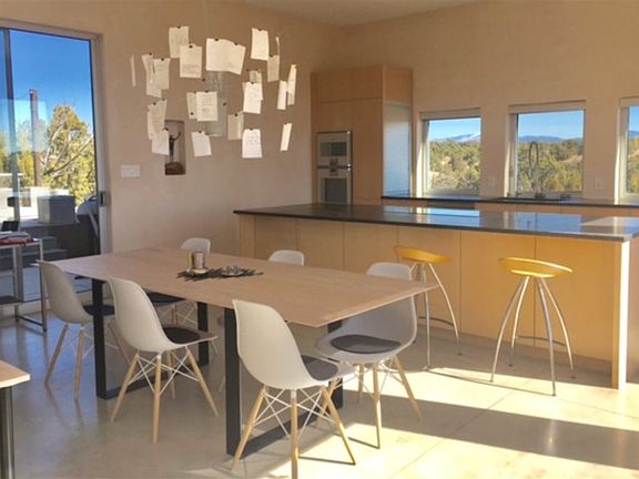 Paradise Found! Stunning contemporary architecture in an idyllic 9.6 acre setting with breathtaking views of the Sangre de Cristo Mountains to the east and inspiring sunset views to the West. This two story, one bedroom house has excellent finishes, high-end appliances, meticulous craftsmanship and design, and is over 1600 square feet. Wonderful outdoor living decks, oversized, attached, two-car garage. Plans for a second bedroom and a guesthouse are available. Strong 40 gallon/minute private well. Only 20 minutes from Southside shopping and 30 minutes to the Plaza.