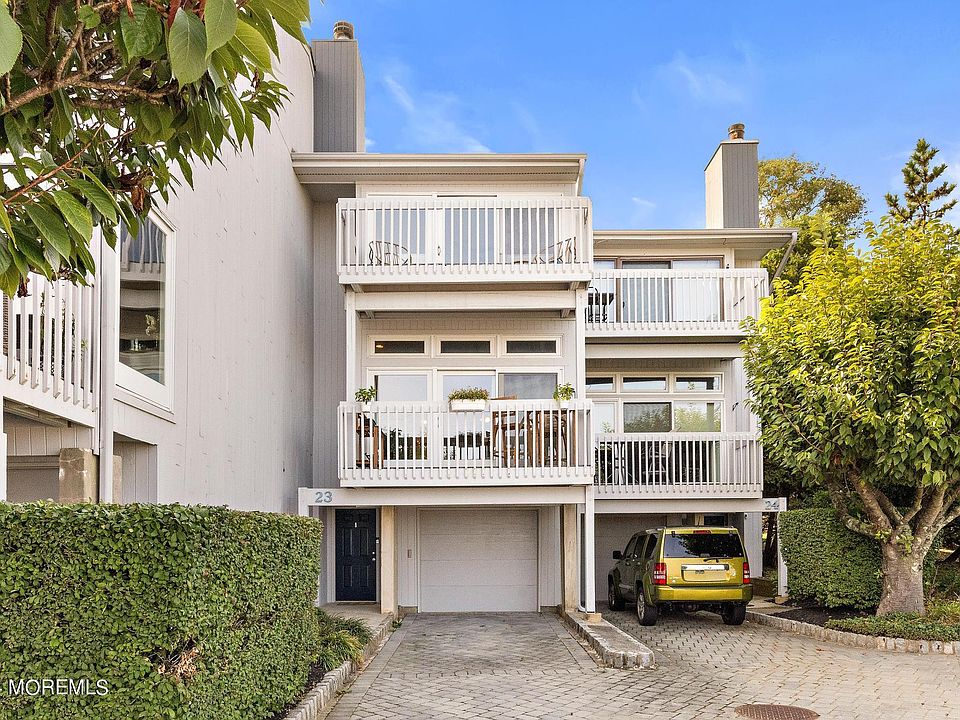 This 2 bed, 3 1/2 bath sits on the hill in beautiful Highlands and offers amazing views of the Atlantic Ocean. Plenty of space to unwind or entertain this is the perfect spot to call home. The large living room w/ fireplace leads to the dining area and expansive kitchen. The top floor contains 2 bedrooms. The primary bedroom includes a fireplace, balcony w/ views of the water and a huge bathroom complete w/ soaking tub. The large second bedroom boasts plenty of closet space. The basement is finished, including a full bath and is great for guests or a kids hangout. Ample Storage space in the garage and parking allows 3 cars. All Highland bars/restaurants and Sea Bright beaches are walkable. Close to Rt 36, the Seastreak ferry and all transportation. Welcome to 23 East Manor Sqr!