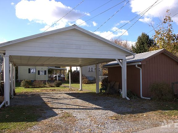 3 BEDRM HOME W/18X24 CARPORT - Attractive home with knotty pine walls and built-in shelving in living rm, large dining rm and kitchen with lots of cabinets. Laundry off kitchen also has 4x9 rm with toilet, covered patio area off laundry. Lg front bedrm has dbl closet, closet with shelves and door to attic. Attic is paneled, but not heated. Middle bedroom provides access to rear bedroom(captive bedrm). Full bath on 2nd floor. Gas fired furnace with hot water radiators.