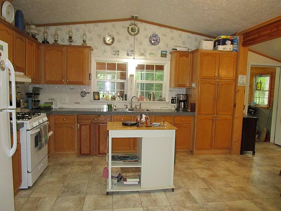 This 2004 single wide is nicely situated on a 2.59 acre lot. Spacious kitchen & dining area. Living room with heat pump and propane fireplace. Upgraded windows offer plenty of natural light. Centrally located laundry area. Primary bedroom with upgraded shower. Enclosed three season porch. Two car garage. Lots of wild life to enjoy. Was a three bedroom design originally. Close to shopping.