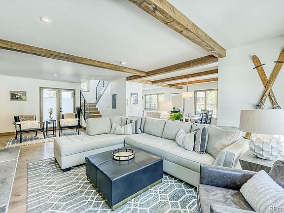 Perched on a private, wooded site in lower Ptarmigan Mountain, this beautifully remodeled home offers breathtaking views of the Ten Mile and Gore Range from the stunning rooftop deck. Thoughtfully redesigned with an expanded loft and sunroom/study, this home seamlessly blends elegance and functionality. High-end finishes include white oak engineered floors, Sierra Pacific windows, granite countertops, and Monogram appliances, all complemented by a solar panel system and Eco Water system for modern efficiency. The oversized garage provides ample space for all your gear, while the paved driveway allows for extra parking, plus space for an RV. Enjoy the serenity of outdoor sitting spaces, a hot tub, and lush landscaping. Just minutes from Summit County’s world-class ski resorts and an easy drive to Denver, this home is a true mountain retreat with every convenience at your doorstep!