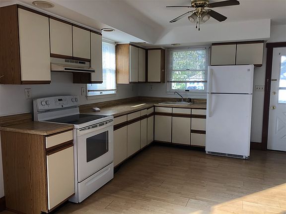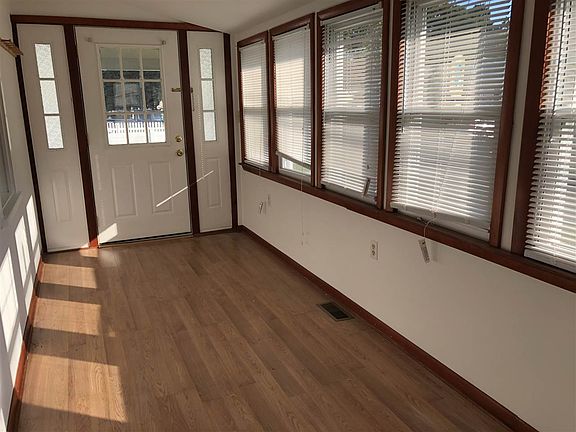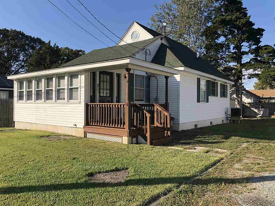 What a Find! This comfortable home offers plenty of space to move around in. Starting with the warm, sunny enclosed front porch and moving right into the living room, followed by the dining room and into the eat-in kitchen, this home offers an easy flow. There are two good sized bedrooms with closets and two full baths. The laundry closet is in the hall by the shared bathroom. There is a huge attic for additional storage plus a storage shed in the rear. Three sides of the rear yard are fenced. There is a large rear deck and a small covered front porch. With central air and propane gas heating, this home is energy efficient all year long.