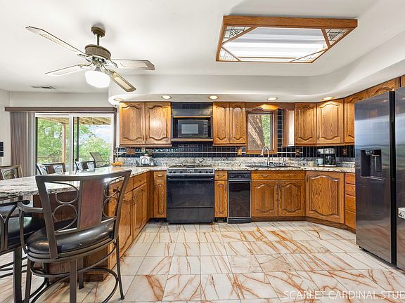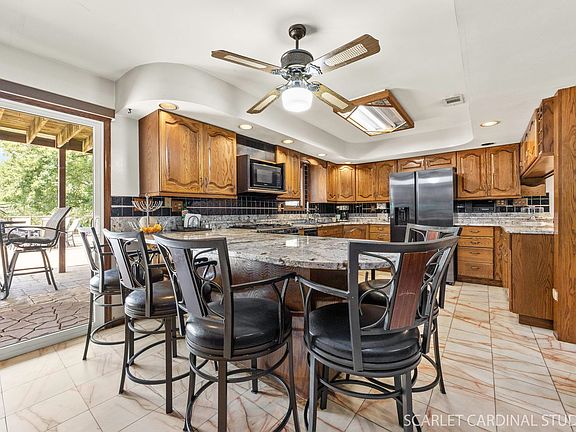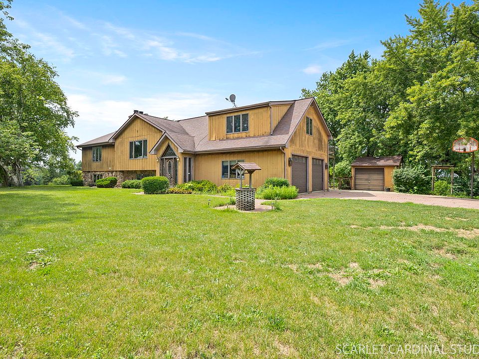 Welcome to 23 Eagle View Lane, a private retreat spanning over 3 acres of stunning land in Oswego! Tucked away in a peaceful setting with incredible sunset views to the west, this one-of-a-kind raised ranch offers the perfect blend of privacy and possibility. Step in and enjoy a large kitchen uniquely situated on the lower level of the home that allows for walk-out access to an expansive backyard boasting an in-ground pool (new liner, 2023) with a diving board, and a large outdoor entertainment area perfect for hosting or simply soaking in the views of the picturesque landscape that surrounds the property. Inside, the kitchen also flows seamlessly into an open family room - creating an ideal space for seamless indoor/outdoor entertaining! Behind the living spaces on this level, new owners can enjoy a media room/home office with an adjacent full bath that can easily be used as a movie room, workspace, or 5th bedroom. A perfectly situated laundry room with plenty of storage rounds out this level for the ultimate in convenience. On the main/upper level of this home, new owners can revel in three comfortable bedrooms, each with an adjacent bath; a formal living room; and dining space - a fun, rare find that gives the upper level plenty of space for everyday living and relaxing! Step up just a few steps and you'll find a primary suite complete with a private bath, walk-in closet, and balcony for even more sprawling surrounding landscape. This is a rare opportunity to own acreage in a highly sought-after Oswego location. Whether you're looking to create a forever home or explore the potential this property offers, the possibilities here are truly special. Don't miss your chance to make this distinctive retreat yours!