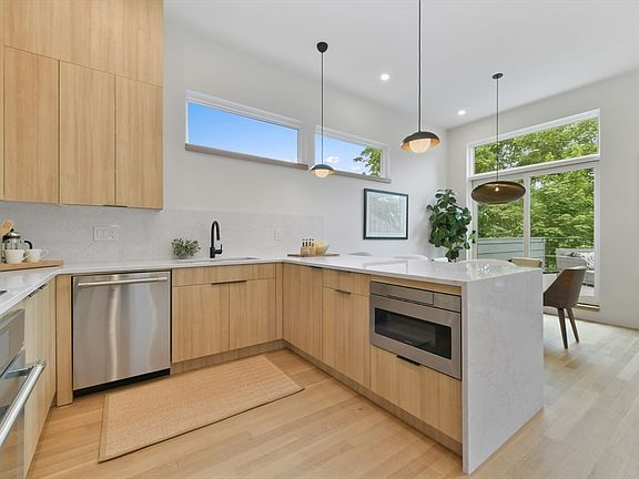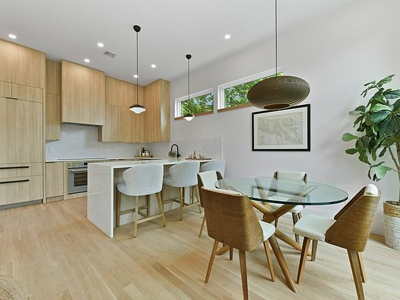 A Modern Retreat in the Trees at the end of a quiet dead-end street, this newly constructed home offers elevated design and natural seclusion. Three distinct communal living spaces provide ample room for entertaining, while four private outdoor areas extend your living experience out of doors. The kitchen is inviting with Thermador induction cooktop and quartz counters. The luxurious primary suite offers a private deck, walk-in closet, and spa-inspired bath featuring a freestanding soaking tub and double vanity. Adjacent is the generous laundry room, as well as a bonus space perfect for a home gym, or a creative space. The lower level offers two additional bedrooms, a shared full bath, and a quiet den/office area—perfect for guests, family, or remote work. The neighboring unit at 21 Eastman Road—slightly smaller at 3,033 square feet—is also available to tour. Both units have private garages, EV charger hook-ups, located up the hill from the very popular 3 Little Figs Café.