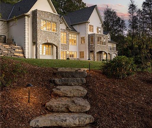 The very essence in Biltmore Forest Living! This prominently sited home is on an exceptionally generous golf course lot offering extraordinary views of Mt Pisgah. Showcasing a classic exterior that is timeless with meticulous details and elegant in proportion, giving way to a modern interior that is bright and airy. Masterfully designed and extensively renovated in 2022, this traditional residence evokes stately timelessness and refined elegance. Grand and gracious with impressively scaled rooms throughout. Unsurpassed quality with a dramatic two-story foyer with custom railing flowing to the oak-paneled library and elegant formal dining room. The gourmet kitchen offers spectacular cabinetry, breakfast room with coffee bar and sunroom overlooking the idyllic setting. The upper-level features two en-suite bedrooms.The lower level a recreation room, media room,two en-suite bedrooms and additional two-car garage. Outback, soak in the views from the stone patio or cocktail island.