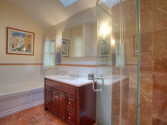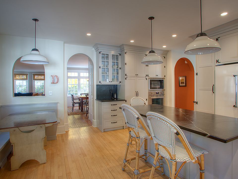 Enhanced with an extensive 2014 renovation and expansion project in all the right places, this stucco-clad Northside Colonial has what today's homebuyers are looking for. Curb appeal and walk-to-everything location are hallmarks of this charming home, tucked behind a front bluestone patio with pretty neighborhood views. There's so much more than meets the eye as well-appointed rooms unfold one after the other. The inviting fireside parlor greets the visitor, featuring a focal gas-log fireplace, hardwood floors and original leaded glass ornamental window. A wide entry into the formal dining room with three sets of French windows creates an easy flow for great entertaining. The large renovated family room offers front and rear property views with access to the new rear deck (2014) and private bluestone patio with gas grill, level lawn and separate play area beyond. Hardwood floors with diamond stained ribbon banding add cachet to this comfortable room. A first-floor home office with oversized windows on three sides offers a quiet respite. The chef's kitchen was totally renovated with a tasteful blend of white and soft gray cabinetry topped with black soapstone and set against high-end Aga and Bertazzoni appliances. A center island and breakfast area with built-in banquette seating are ideal for casual gatherings, with deck access for extended outdoor dining, while a wet bar with custom cabinetry connects the kitchen to a cozy den for added leisure activities. The second-floor master bedroom is poised beneath high ceilings, with windows on three sides and a dressing area that has double and single closet, plus two extra reach-in custom fitted closets. The lovely skylit master bath with vaulted ceiling is anchored on distinctive marble tile floors,and features an oversized corner shower and separate tub. Three additional bedrooms reside on this floor, each with deep or walk-in closets and two sets of French windows. One of the bedrooms has an ensuite bath with tub shower, while a hall bath with frameless shower serves the other two bedrooms. A privately set fifth bedroom with office/play area and hall bath with tub shower on the third floor offer added space and versatility as a possible guest quarters or in-law suite, if desired, along with plenty of walk-in attic storage. A total lower level renovation (2014) includes a recreation room with wall-to-wall carpeting, play area, laundry room and half bath, along with French drains and sump pump. Attractive extras include two-zone HVAC (2014) with added lower level zone, mud room addition (2014), updated electrical panel with added generator panel and outlet, a two-car detached garage, and more. Step into this Colonial delight and be prepared to fall in love!