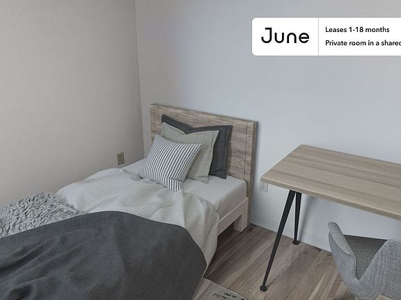 This Full room in Brighton is available on a 12 month lease or a flexible short term (31 to 364 days) lease. You pick your custom start and end date. Monthly rent rate is determined by furnishing preference, move-in date and move-out date. Speak to a June representative for recommendations on the best stay duration for the lowest rate.