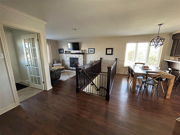 Impeccable grade level bungalowOpen concept main floorRich dark kitchenSit up peninsulaCozy propane fireplaceFully developed basementGood sized family room