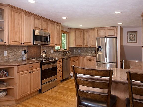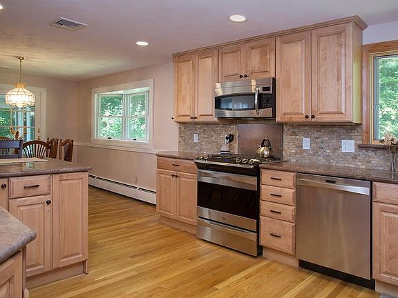 Charming home in great neighborhood and dead end street, with beautifully remodeled kitchen (2012) and master bathroom (2014). Ideal for first home buyers or downsizers. Private level back yard on 1/2 acre of property abutting conservation land with access to walking trails. The home features a living room with newer gas fire place, kitchen with slider opening into a nice sized screened in porch with ceiling fan and overlooking attractive gardens. Three spacious bedrooms and 2nd full bath in upper level. Central AC and ceiling fan in master bedroom. Many recent windows replacements and recent additional insulation installed. Roof is less than 5 years old. Half bath and separate laundry room off of the mudroom/office area. Two car attached garage. Top rated Acton schools with access to commuter rail to Boston or Rte 2. Opportunity for some finishing touches to make this a home of your own.