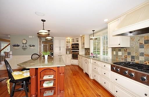A great combination of quality and character from the moment you drive up to this home. The beautiful landscaping and inviting farmers porch instantly draw you in. Once you step over the threshold you will instantly feel right at home. Entering into the warm family room with fireplace, slider to the back yard and open to the expansive renovated kitchen. Kitchen is striking with beautiful cream cabinets and elegant granite. Hidden refrigerator and warming drawers and top of the line appliances such as the thermadore, subzero and dacore. Kitchen is open to the dining area with wide pine floors. Through the fireplace living room is the sunroom; a true selling point of the house. An abundance of windows, light and views of the pool, hot tub, landscaped back yard with stone walls and patio. Upstairs has 3 spacious bedrooms sharing a full bathroom. The 4th bedroom is a renovated master with 2 walk-in closets and a private bathroom; complete with a jetted tub and skylight. PERFECTION