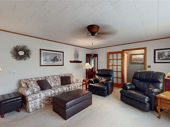 - Entrance Foyer, Eat-in Kitchen, Separate/Formal Living Room, Sliding Glass Door(s), Solid Surface Counters, Natural Woodwork, Window Treatments, Bedroom on Main Level, Main Level Primary, Workshop