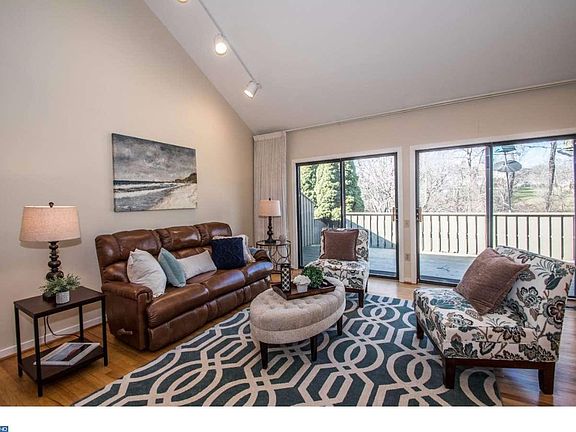 Welcome to this rarely available three-story townhome in the desirable community of Limestone Hills! You are sure to be delighted as you enter into the two-story foyer with gleaming hardwood flooring, which also flows throughout most of the main floor. Once inside, the open floor plan welcomes you as you enter into the great room with its vaulted ceiling and a wall of glass sliding doors to the deck, offering a truly spectacular view of the trees and open space and allowing for an abundance of natural light. The two skylights and the wood burning fireplace with built-in shelving on both sides add to the dramatic effect. The kitchen with stainless steel appliances, granite countertops and island seating is open to the great room and also the dining area, making it perfect for entertaining family and friends. Also on the main floor is a large bedroom with new carpeting, a walk-in closet and a linen closet plus a door to the full bath, making a first floor main bedroom suite a possibility. Or choose to use the the main bedroom suite situated on the second floor which has two skylights, multiple closets, recessed lighting, a ceiling fan, a full updated bath and a loft. The loft, which overlooks the great room, has hardwood flooring, recessed lighting and a large closet. So many possibilities here! Going up to the third floor you will find two more bedrooms, a full bath with new flooring, a linen closet, a storage closet plus its own HVAC system. The full basement provides plenty of extra storage space and has lots of potential. There is a one-car garage and driveway parking plus plenty of available parking in Falcon Court. Located on a quiet street, this home has everything you have been looking for...lots of space, updates, privacy, great schools and a wonderful community. Situated close to shopping, schools, transportation, entertainment and parks, it will not last long. Come and take a look before it's gone!