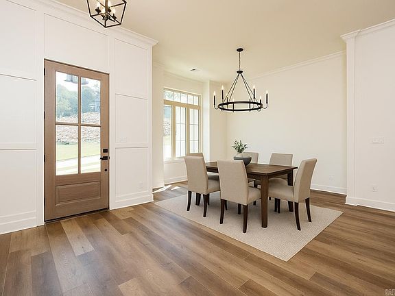 Welcome to 23 Falstone, a stunning home on a .44-acre lot showcasing panoramic views of the hills and Pinnacle Mountain. The main level offers an 18x18 great room with built-in bookcases, gas fireplace, and beveled-glass French doors opening to a spacious covered deck. With 11’ ceilings, the open layout flows seamlessly into the dining area and gourmet kitchen featuring a 5x8.5 quartz island, 6-burner gas range, convection oven, two sinks, custom shaker cabinets, and dual pantries. A versatile bedroom or study with adjacent bath provides flexibility, while the 13x16 primary suite offers 10’ ceilings, a spa bath with shaker tub, large shower, walk-in closet, and serene mountain views. The lower level includes a 16x18 game room with wet bar and French doors to a second covered deck, plus three bedrooms and two full baths. Highlights include 9’ ceilings, custom crank-out windows, tankless water heater, laundry with pantry and hanging space, 8’ first-floor interior doors, durable 7” random plank floors, a built-in hanging area off the kitchen, and attic storage above the garage. This home perfectly blends luxury, function, and timeless design in a sought-after setting.