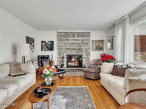 Best & Final Offers Due 1/19 @ 6pm. Nestled in a desirable & convenient Newtonville neighborhood, you will be drawn to the appeal and functionality of this well-maintained brick & cedar 4+ BR, 2 BA original owner 2,000+SF Mid-Century Ranch. The inviting front porch welcomes you into a spacious living room with a handsome stone fireplace. Formal dining room overlooks the backyard. Country eat-in kitchen with ample cabinetry. Family room with built-ins & sliding door opening to rear deck. Primary bedroom with en-suite bath. Ceramic tile hall bath. Two additional spacious (king size) bedrooms complete the main level. The lower level adds versatility, making it ideal for additional bedrooms, home office, gym or flex space. Beautiful hardwood floors throughout add warmth to the home's appeal.