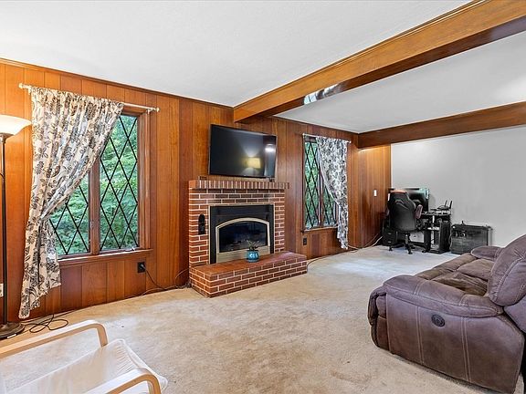 Welcome home to your country oasis in the city! This 2 bed 1.5 bath home is set on a quiet street nestled back into a large (1.3 ACRE!), private lot. Interior features include spacious living room with gas fireplace and beautiful wood beams. Kitchen opens up to large dining room perfect for family gatherings, and the heated/year round Sunroom is the perfect place to enjoy your morning coffee or for summer nights with friends. Partially finished basement complete w/wet bar and kitchenette. Newer heating system within the last 6 years. Garage door replaced 2022. Great starter home, especially if you love to entertain! Open House Saturday 11:00-1:00pm