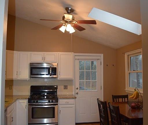 - Kit Dscrp: Main Level, Dining Area, Ceiling Fan(s), Countertops - Stone/Granite/Solid, Cabinets - Upgraded, Deck - Exterior, Skylight, Ceiling - Cathedral, Stainless Steel Appliances, Open Floor Plan, Flooring - Laminate, Remodeled, Balcony / Deck, Exterior Access, Gas Stove
