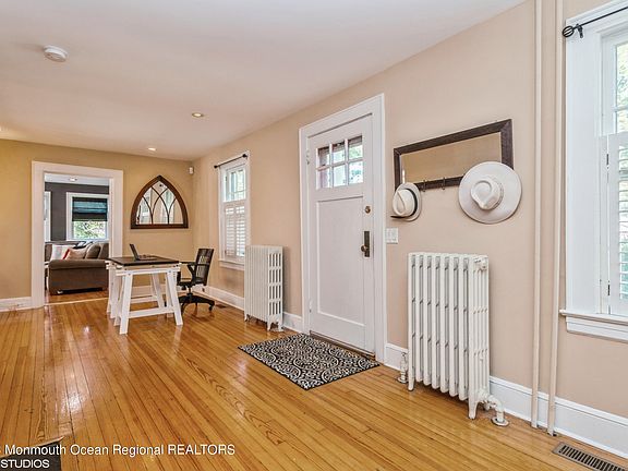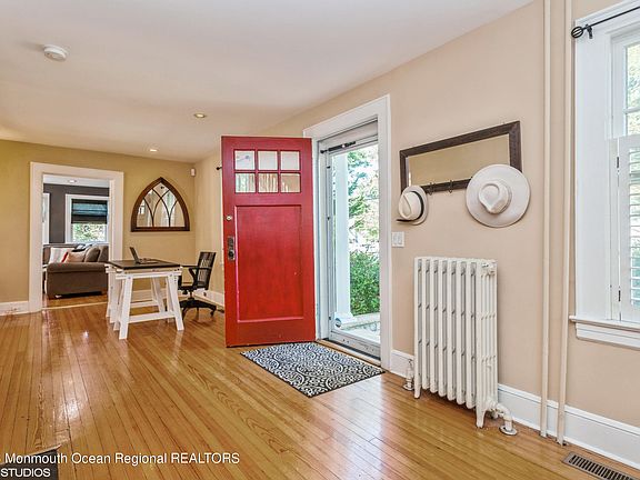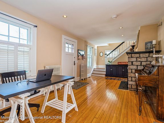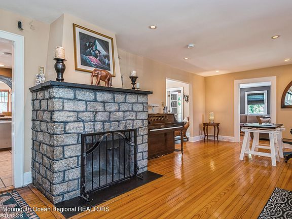 Beautiful Dutch Colonial In sought after River Plaza (Middletown) neighborhood. This 4 bedroom, 2.5 bathroom home has an incredible Tuscany Style Kitchen with a stucco archway and two wood burning fireplaces. The eat in area has a high vaulted ceiling with a panoramic view of the patio and pool area. Enjoy radiant heated kitchen floors and beautiful wood floors throughout. This home has a designer lake shape pool with a waterfall and slide that is open and ready to swim in. There is a covered porch overlooking pool too. Upstairs there is a large primary suite with vaulted ceilings. The garage is set up as a pool house or extra room. Charming home in a very desirable neighborhood. Very close to Red Bank.